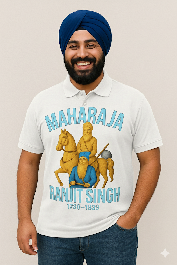 • Design Highlight: A bold and artistic print of Maharaja Ranjit Singh on the front side — symbolizing courage, leadership, and glory.