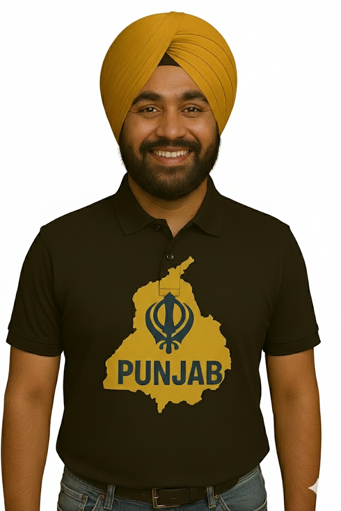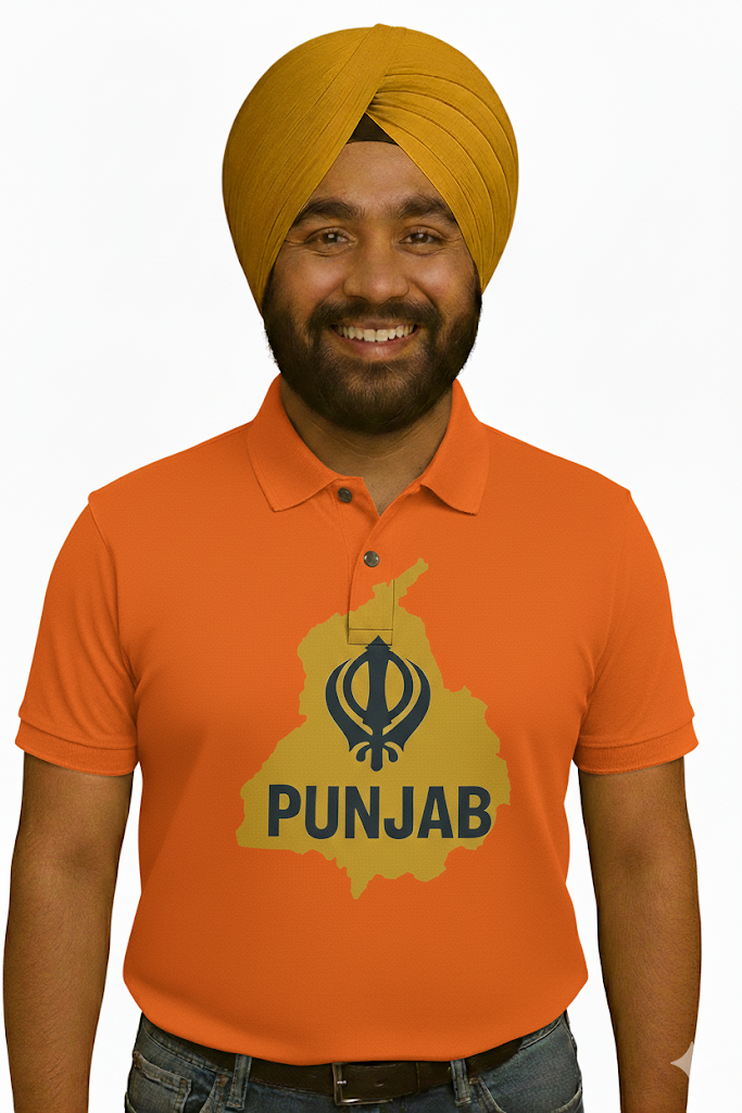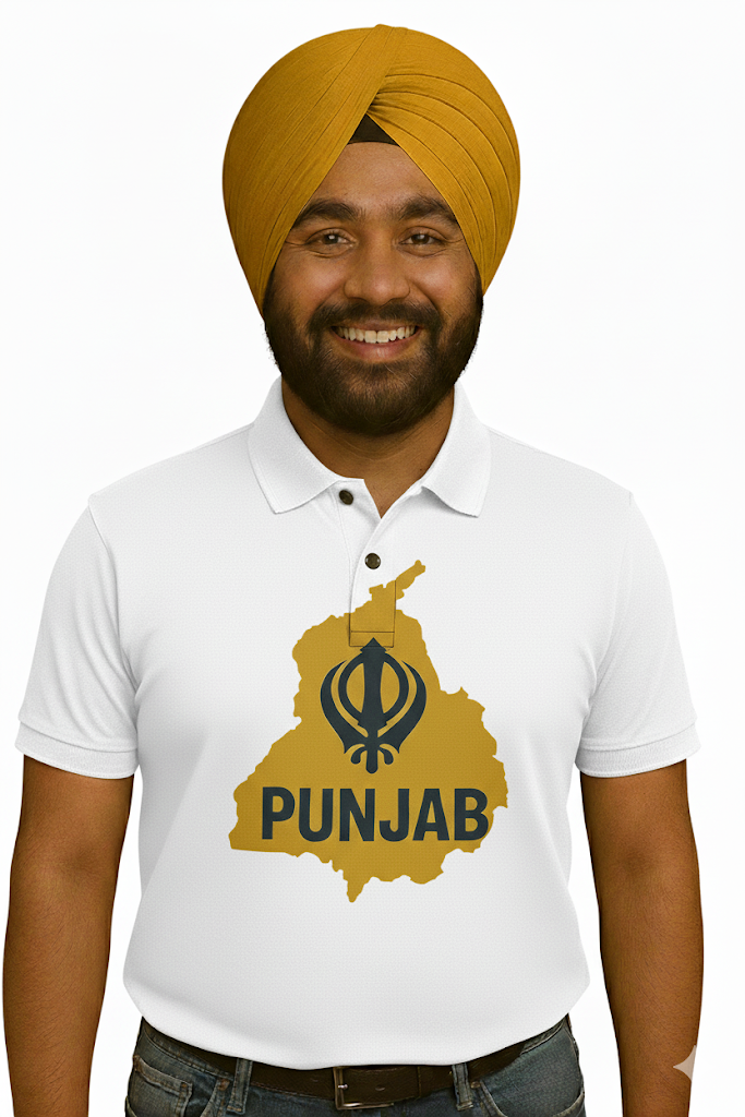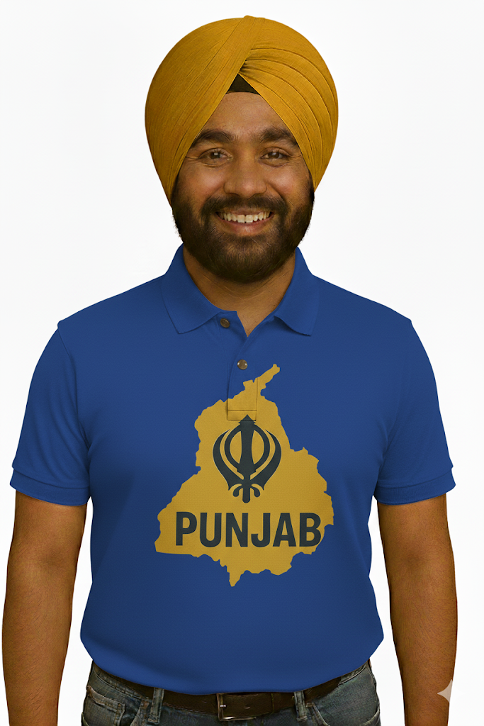Design Highlight: Features the word PUNJAB stylishly placed inside the map of Punjab, along with a bold Khanda symbol on the front — representing culture, strength, and identity.